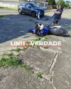 Na tarde deste domingo (16), por volta das 16h, um acidente envolvendo um carro e uma motocicleta foi registrado na Rua Imigrante Benedett, no Bairro Pinheirinho.