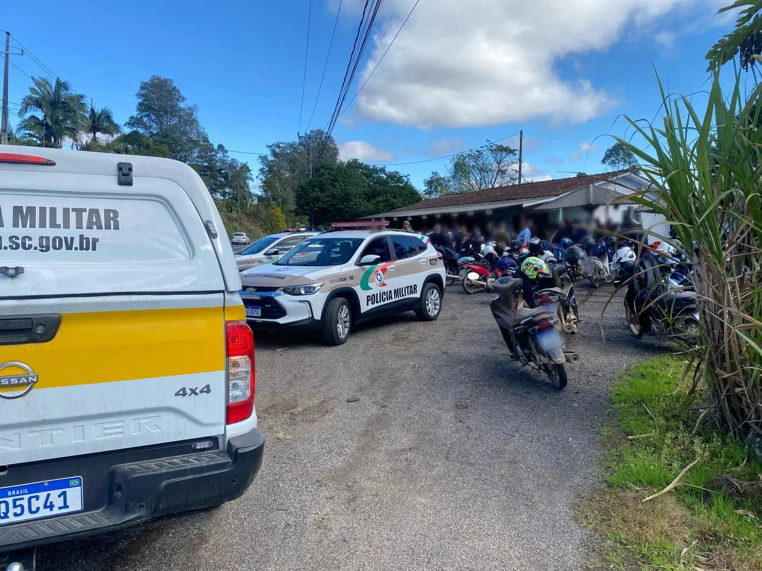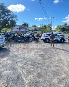 A Polícia Militar Rodoviária (PRE), com apoio da Polícia Militar de Orleans e Lauro Müller, foi acionada e rapidamente localizou o grupo. Durante a abordagem, foi identificado um condutor que executava manobras arriscadas, incluindo derrapagens e frenagens com deslizamento de pneus.