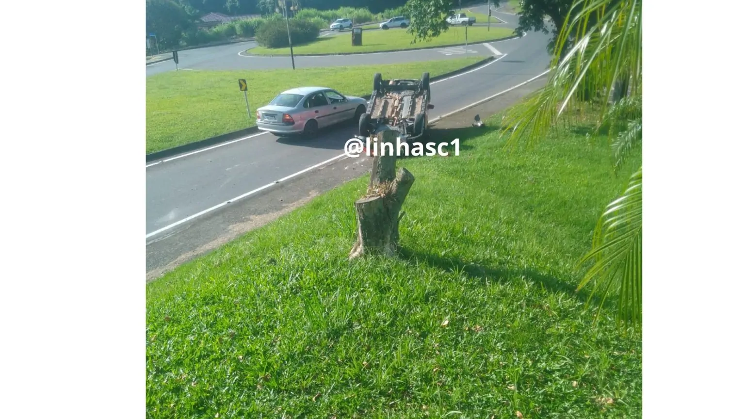 Carro capota próximo a rótula do bairro São Simão, em Criciúma