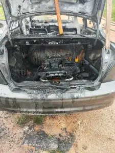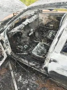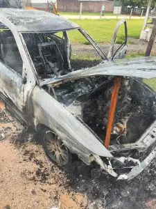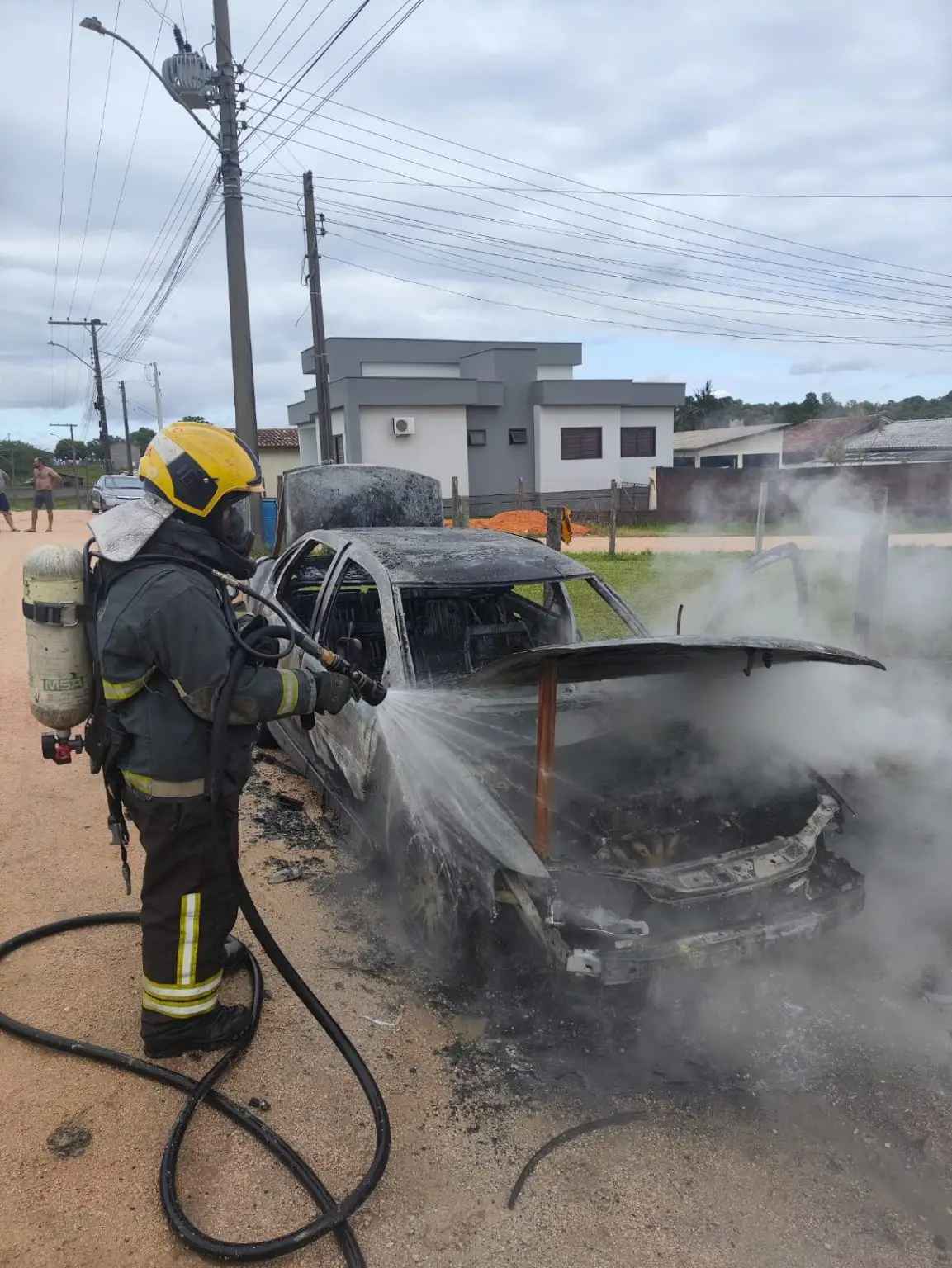 Carro pega fogo em Içara e fica destruído pelas chamas.