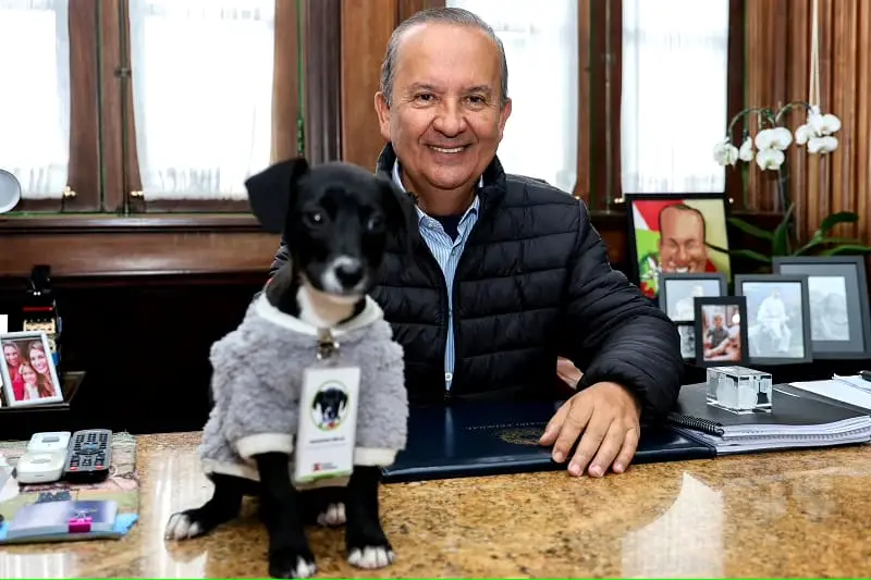 Um filhote de cachorro de três meses foi adotado pelo governador Jorginho Mello (PL) e já frequenta a Casa d’Agronômica, em Florianópolis. O cão era cuidado por detentos.