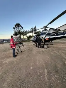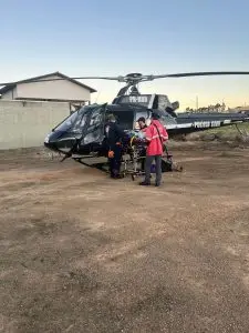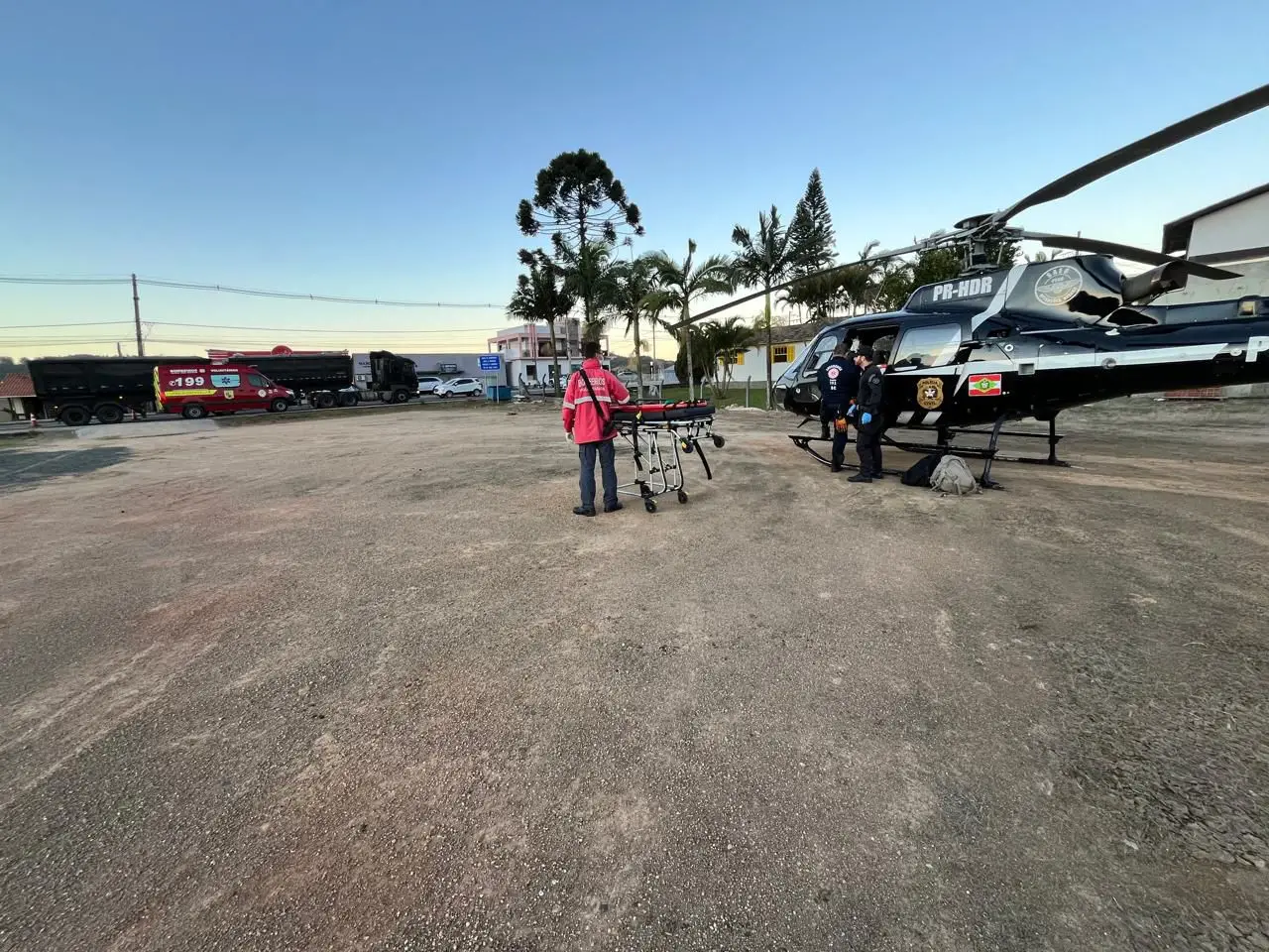 A vítima apresentava traumatismo cranioencefálico grave e precisou de estabilização no local antes de ser encaminhada ao Hospital São José, em Criciúma, referência em casos de trauma.