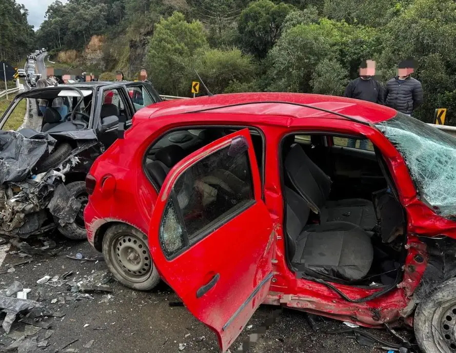 Um grave acidente de trânsito foi registrado na manhã deste sábado (14), por volta das 11h23, na SC-110, localidade de Águas Brancas, em Urubici, na Serra Catarinense. A colisão envolveu dois veículos — um Volkswagen Gol vermelho, com placas de Urubici, e um Fiat Uno preto — e deixou múltiplas vítimas, incluindo uma criança de apenas 5 anos.