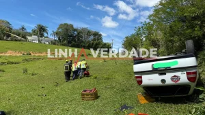 A ocorrência foi registrada às 9h29 e mobilizou as viaturas ABTR-128 e ASU-515, com apoio da guarnição de Içara. Ao chegarem ao local, os bombeiros encontraram a vítima dentro do carro, presa pelo cinto de segurança e de cabeça para baixo. Apesar do susto, o motorista estava consciente e orientado, mas reclamava de dores na região do pescoço.