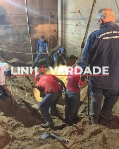 A equipe de resgate iniciou a retirada da ração e localizou o trabalhador cerca de 30 minutos depois, a três metros de profundidade, sem sinais vitais. Por causa da alta temperatura do material, em torno de 40 graus, os bombeiros precisaram remover mais da metade do silo para liberar o corpo. Os agentes içaram a vítima com cordas e polias, com apoio de uma máquina carregadeira da empresa.
