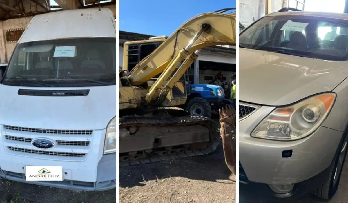 Mais de 90 veículos e máquinas pesadas serão leiloados online em 14 de novembro, com expectativa de arrecadar mais de R$ 1 milhão para a prefeitura