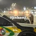 Como resultado, o carro sai do chão, “voa” e capota várias vezes antes de parar fora da pista. O impacto destrói o veículo e deixa a cena digna de filme, só que com risco real de tragédia.