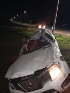 No local o paciente que era caroneiro estava no banco traseiro, consciente orientado, sinais vitais alterados (hipertensão) e apresentando escoriações na face. Ele não conseguia sair por meios próprios do veículo e foi preciso fazer a extração em ângulo de 90°. O motorista do veículo que também foi extraído em ângulo 90° foi atendido e conduzido pela equipe do Samu, ambos foram conduzidos para Hospital São Sebastião de Turvo Segundo relato do motorista, o mesmo perdeu o controle da direção, e veio a capotar o veículo