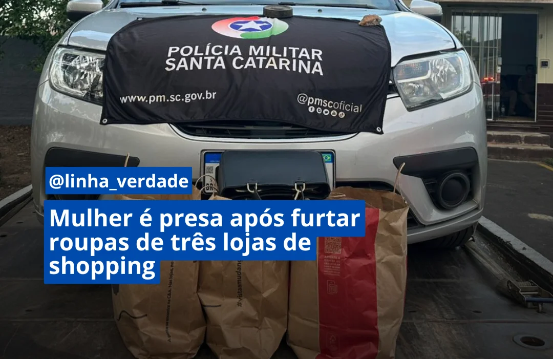 Uma mulher de 33 anos foi presa na tarde deste sábado (31) após furtar 118 peças de roupas de três lojas em um shopping localizado na Avenida Jorge Elias de Lucca, no bairro Nossa Senhora da Salete, em Criciúma.