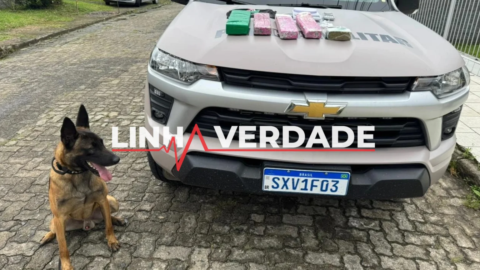 Durante as diligências, os militares perceberam um intenso odor característico de maconha, e o cão Flash do Canil K9 foi acionado para prestar apoio. Com isso, foram encontrados aproximadamente 3,1 quilos de maconha, embaladas em uma bolsa na cozinha, além de outra pequena porção sob um sofá na sala.