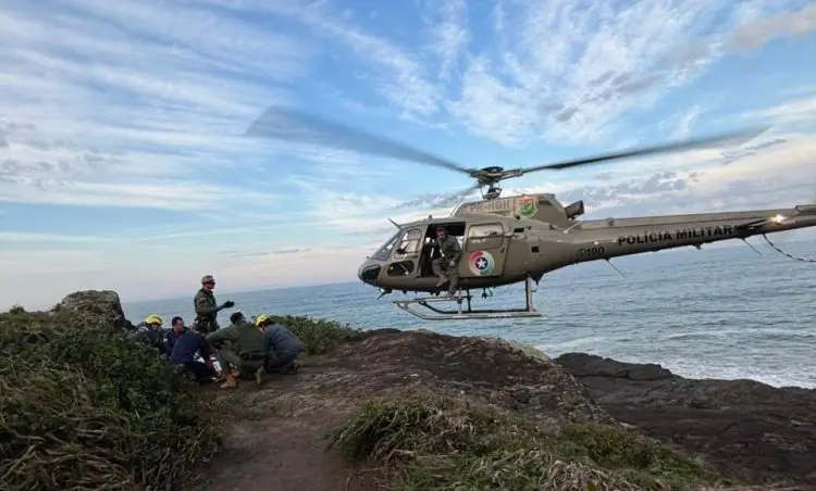 Uma idosa de 65 anos caiu durante uma caminhada na trilha da Galheta, na praia de São Miguel, em Penha, no litoral Norte de Santa Catarina, e precisou ser resgatada de Helicóptero Arcanjo na tarde deste sábado (26). O local, de difícil acesso, exigiu uma operação conjunta entre bombeiros e equipe aérea.