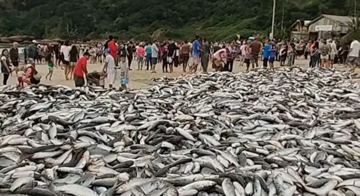 Nesta quarta-feira, dia 18, a Praia da Pinheira, em Palhoça, foi palco de uma grande pesca de tainhas. Imagens impressionantes viralizaram nas redes sociais. Os pescadores estimam que mais de 30 mil tainhas foram capturadas.