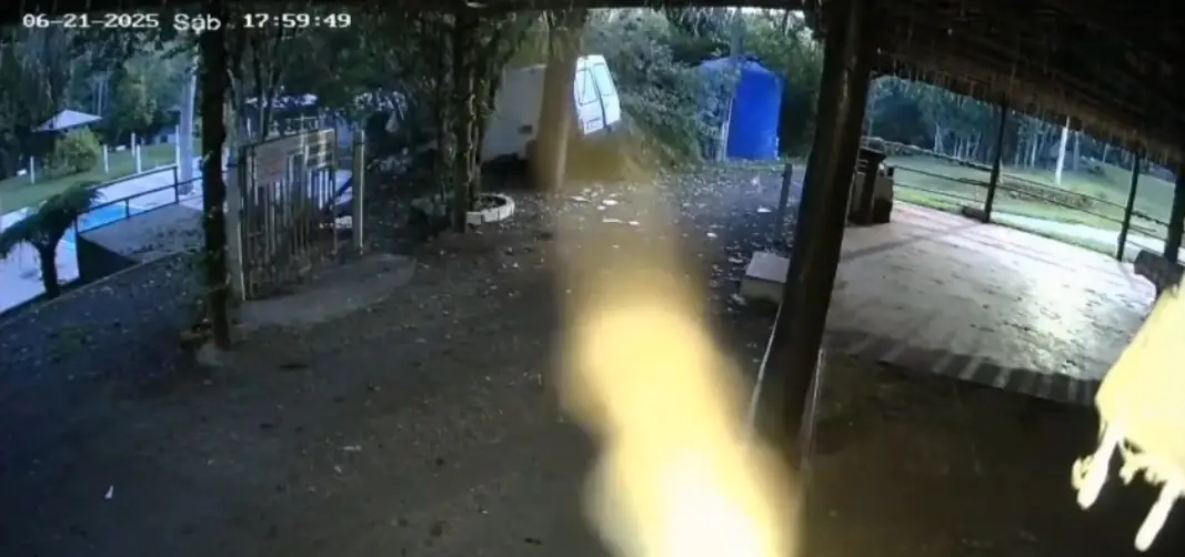 Uma violenta colisão foi registrada na tarde deste sábado (21), após saída de pista de uma Fiat/Fiorino. O fato foi registrado pelas câmeras de monitoramento do Camping do Neuro em Paial, no Oeste.